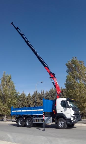 Hermont ha entregado un vehículo VOLVO FM (N3G) completado a través de una Grúa Hidráulica Articulada FASSI F235A.2.26 E-Dynamic y una caja abierta basculante con cilindro central telescópico.